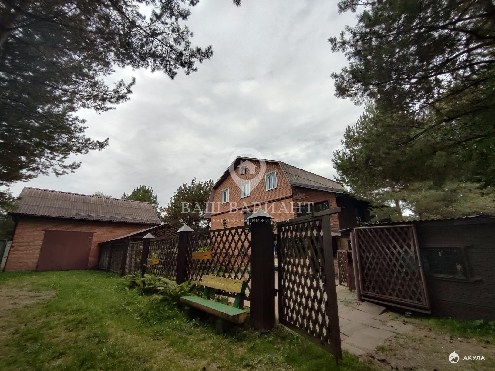 На участке , который утопает в вечнозелёных хвойных деревьях. Есть гараж на крупный автомобиль и сопутствующую технику, навес. Подсветка дорожек. К реке ведет тропинка к вашему приватному пляжу.