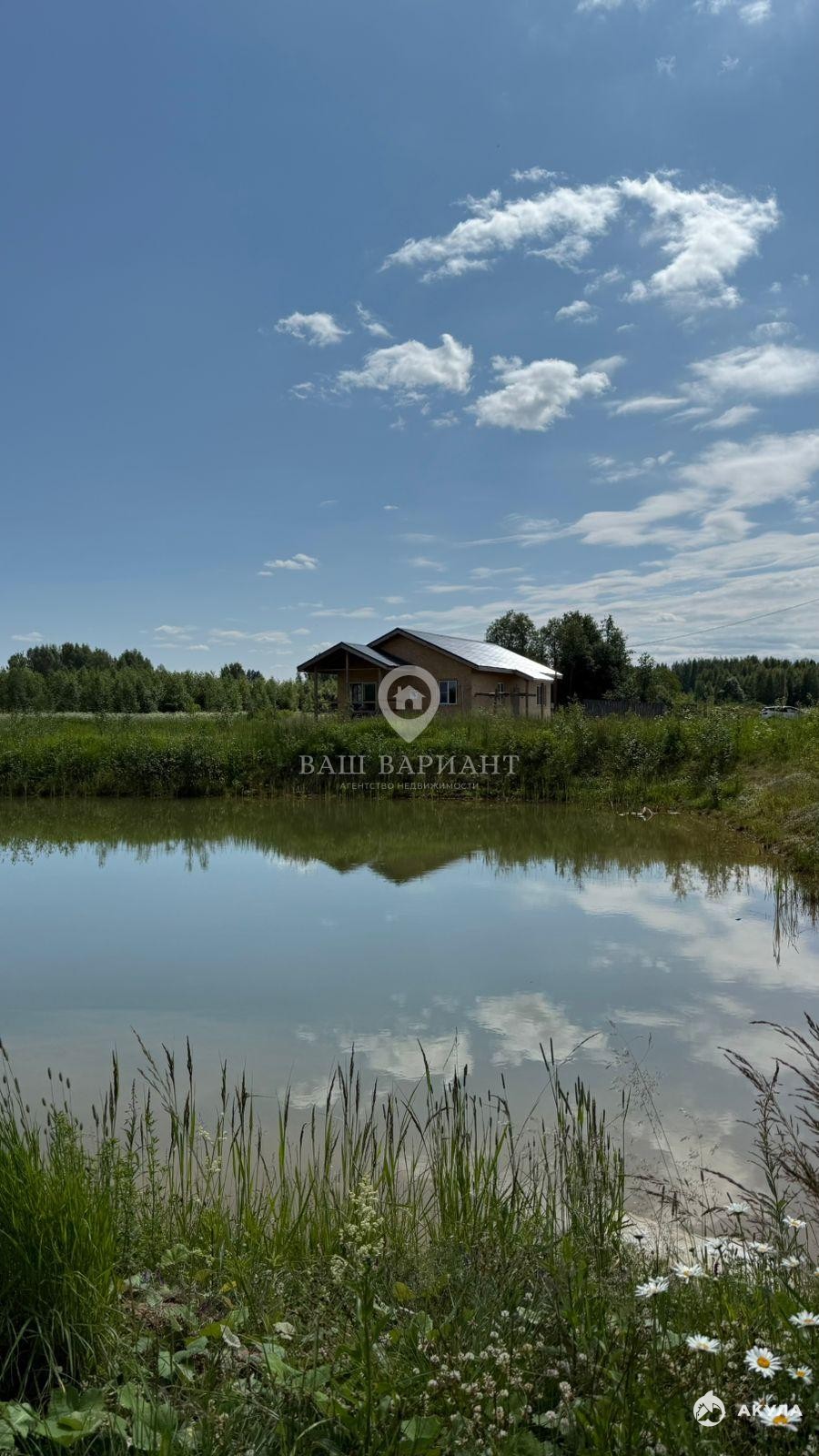 Дом расположен в 9 км от города Рыбинск и в 300 км от МКАД. По краю участка протекает ручей, который расчистили, расширили и сделали в нём заводь — можно купаться прямо на участке! Рядом также есть большой глубокий пруд, до которого всего 3 минуты пешком. Здесь вас ждут экология, чистота и тишина, а до города всего 10–15 минут на машине. Регулярно ходит общественный транспорт.