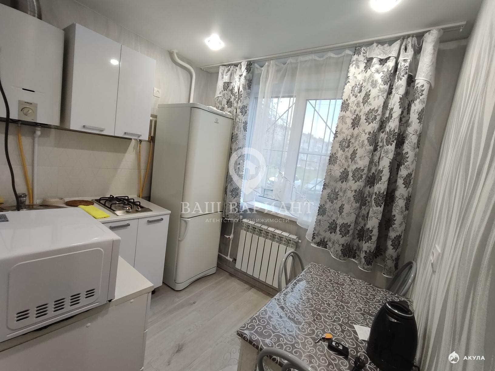 Квартира на комфортном 1-м этаже. Общая S = 45, 4 кв.м., жилая 28 кв.м., кухня — 6 кв. м. Выполнены работы по капитальному ремонту.